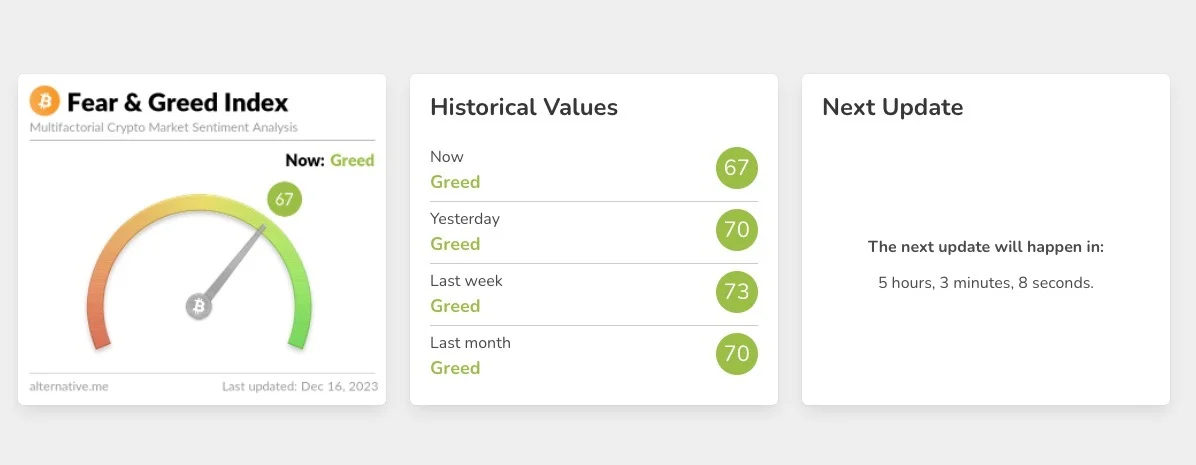 💥 Wciąż na rynku dominuje chciwość. We wrześniu był to strach, w październiku neutralność, a właściwie od listopada chciwość na baardzo wysokim poziomie.