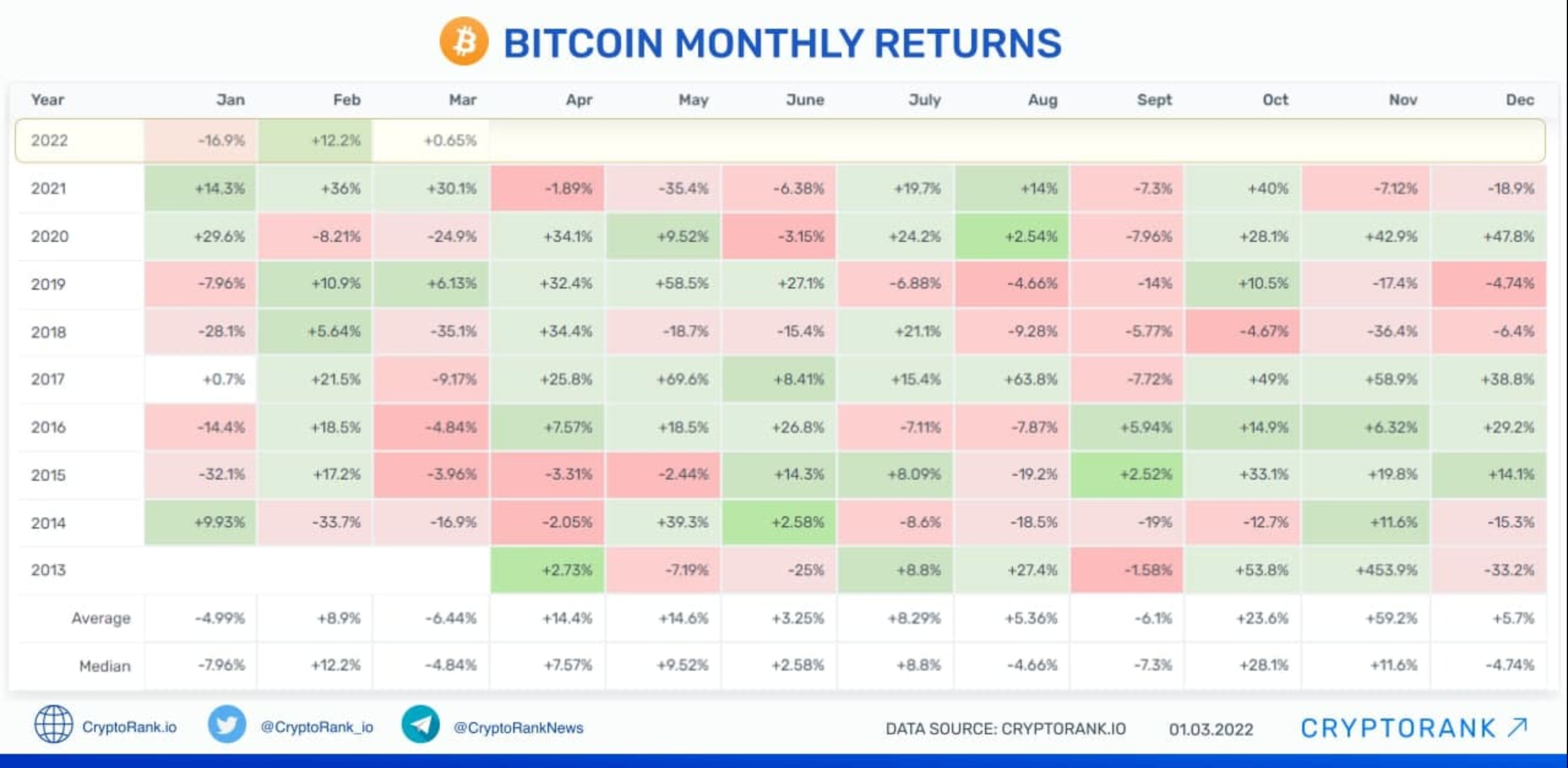 Jeśli zerkniesz na wykres poniżej, zobaczysz, że wrzesień i marzec to najsłabsze miesiące dla krypto. Za to październik i listopad są łaskawe, może właśnie dlatego, że tacy jak ja i Ty zerkają na wykres i wykorzystują wrześniowe przeceny. 😂