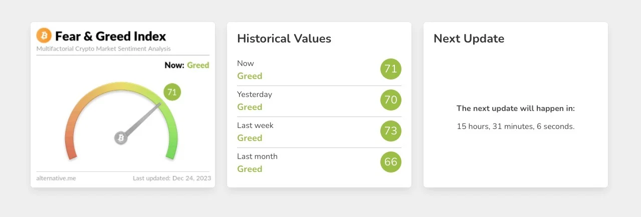 💥 Wciąż na rynku dominuje chciwość. We wrześniu był to strach, w październiku neutralność, a właściwie od listopada chciwość na baardzo wysokim poziomie i nic nie wskazuje na to, że coś się zmieni w najbliższym czasie.