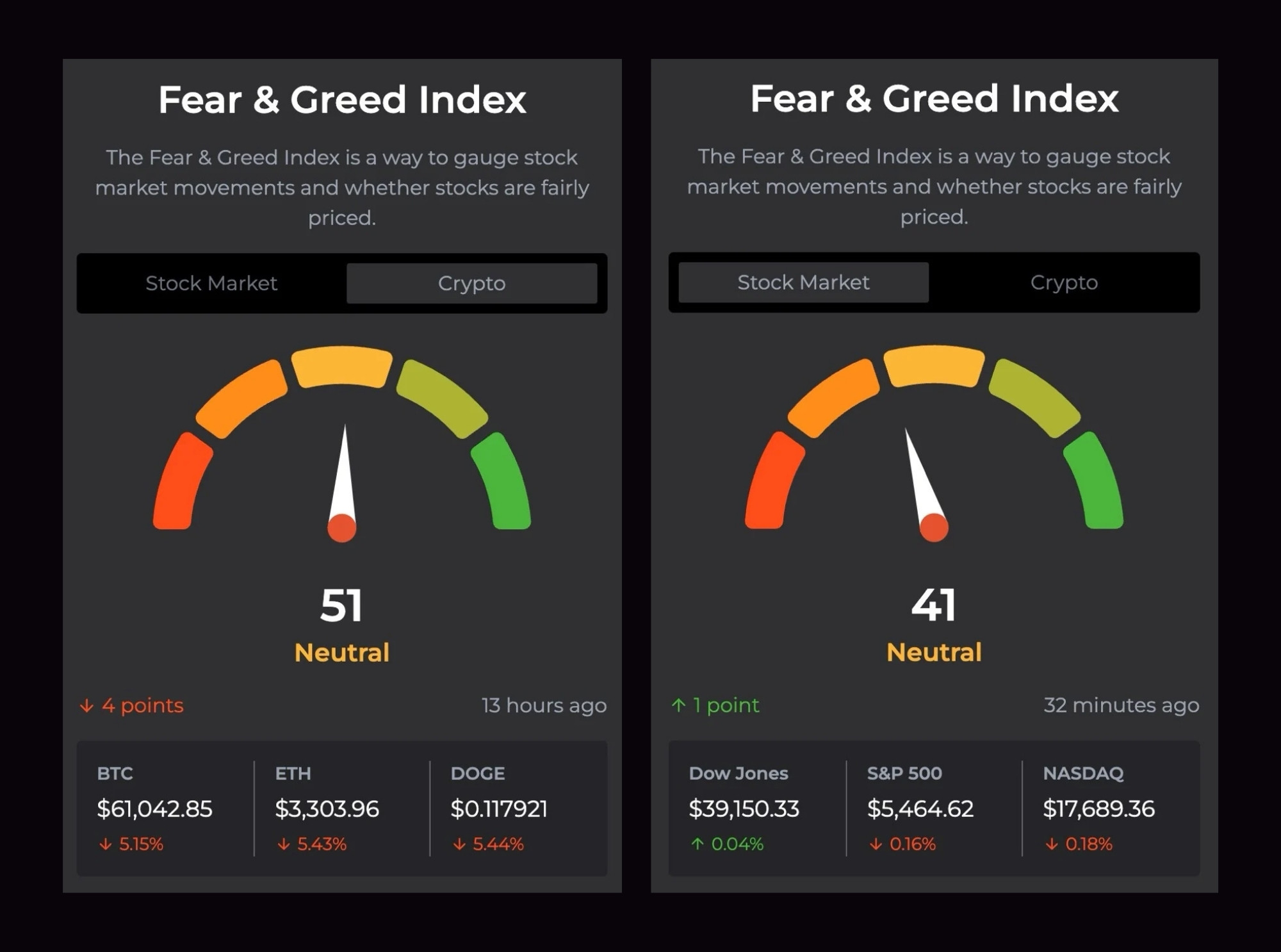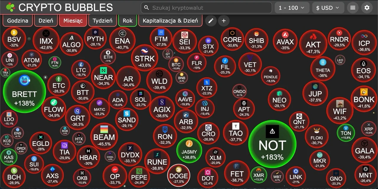 Widać to zresztą po sentymencie na rynku krypto i akcji. Po raz pierwszy od dawna na krypto jest neutralnie – za nami miesiące chciwości. Imo (in my opinion) jest to dobry moment na robienie zakupów. Oczywiście, może spaść jeszcze trochę, jednak już teraz jest to całkiem fajny dip (spadek cen kryptowalut). Jeśli przymierzasz się od jakiegoś czasu do zakupów, myślę, że to odpowiedni moment, choć pamiętaj, by inwestować spokojnie, bez nastawienia na szybki zysk i z zabezpieczeniem swojego kapitału także w innych aktywach. 👾